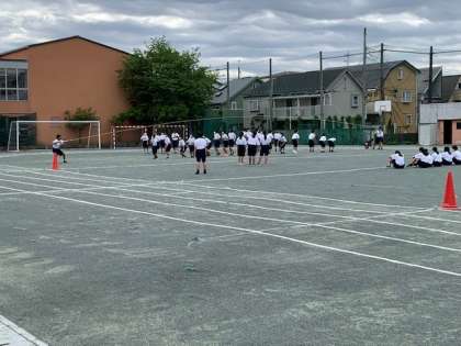 本日はGWの合間の登校です。6時間授業です。1年生の体育の様子です。体育大会を今月に控え、バトンの練習や大繩の練習を行っていました。