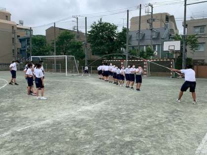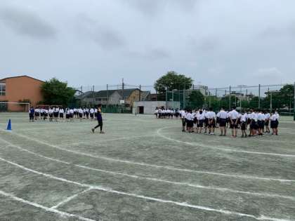 2枚目の写真は1年生が全員リレーの後、クラスで輪になりミーティングをしていました。大繩も各クラス回数を多く跳べるようになってきました。3年生はさすがです、50回を超えているクラスもありました。