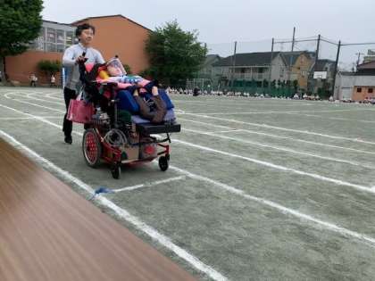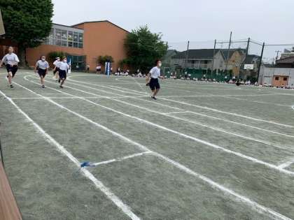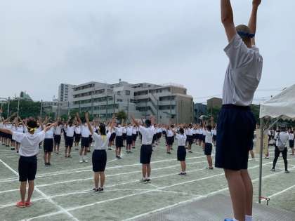 ラジオ体操の様子。指先まで意識をした力強い体操です。