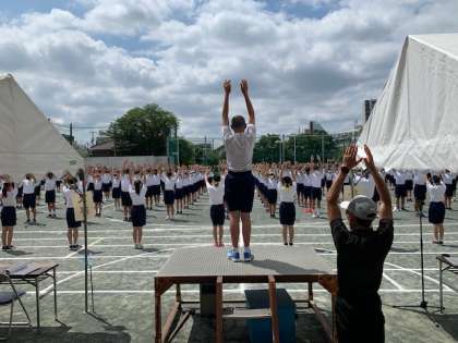 再開会宣言、準備体操からスタートしました。3枚目は、女子800mの様子です。