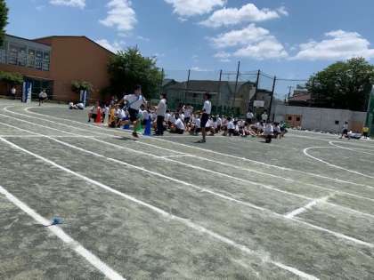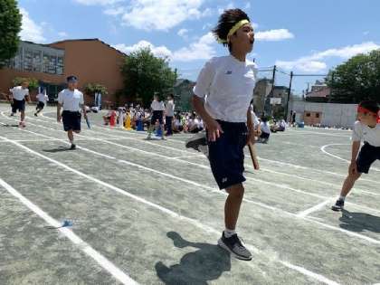 2年生、全員リレーです。どのクラスも最後まであきらめず走り切りました。