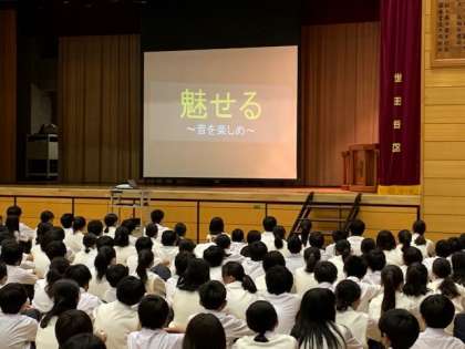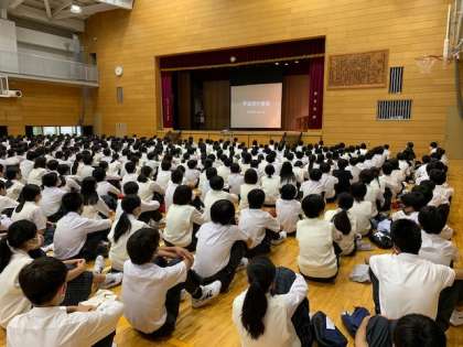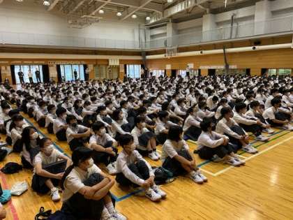 本日は全校朝会がありました。先月体育会が無事成功に終わり、これからの学校行事や部活動、学習など目標を達成するために、真剣に取り組んだその取り組みを活かしてほしいものです。次は期末考査ですね。各部活動の表彰も行いました。学芸発表の実行委員長からは、今年度の取り組みについて発表がありました。今年度のスローガン、そして各学年の取り組み方についても話がありました。