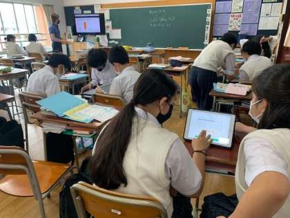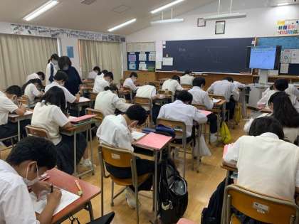授業の様子 公開日 2022/06/17 更新日 2022/06/17 学校日記 1枚目は、2年生英語。インタラクティブツールを使い、英文のクイズに取り組んでいました。楽しそうに活動していました。 2枚目は、2年社会。「大都市圏の形成と都市の産業」についての学習です。プレゼンテーションソフトを工夫により、生徒が意欲的に参加していました。 3枚目は、2年生理科。天気図を読む学習の様子です。等圧線をつなぐ作業に取り組んでいました。 いいね(0)