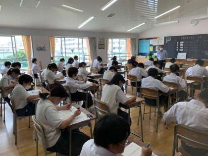 本日から3日間、期末考査です。ここまでの取り組みの成果がしっかり出せるようにしたいものです。どの学年も真剣に取り組んでいます。緊張感が伝わってきます。