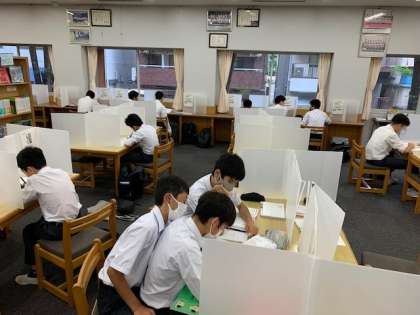 情報学習室で朝早くから多くの生徒が学習をしていました。最後まであきらめない姿勢が大切ですね。