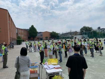 本日、午前中は避難所運営訓練を開催しています。災害時、地域の皆様を中心に運営が円滑に進められるよう訓練を行っています。中学生のボランティアは気温が高くなることが予想され、本部の判断で本日は参加を中止としました。いざという時には、中学生の力が期待されます。