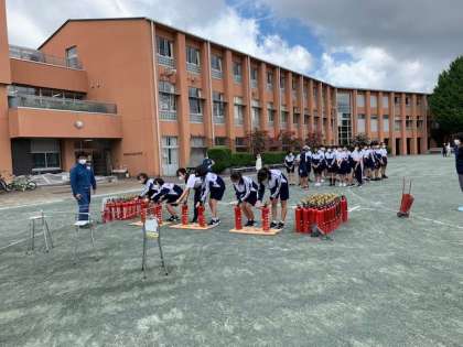 消火器を使った初期消火訓練、AEDによる救急法、防災に関する講話・DVDの視聴を行いました。これを機会に防災への意識を高めていくことが大切です。