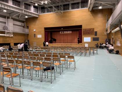 遅くまでリハーサルをしていました。会場の準備も整いました。3学年が全員揃っての鑑賞は久しぶりです。会場の関係上、保護者の皆様はzoomでのご鑑賞となりますが、ぜひ生徒たちの練習の成果をご覧ください。