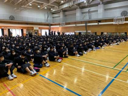 久しぶりの全校朝礼でした。部活動や地域の活動での素晴らしい活躍で、多くの表彰を行うことができました。烏中生がんばっています。