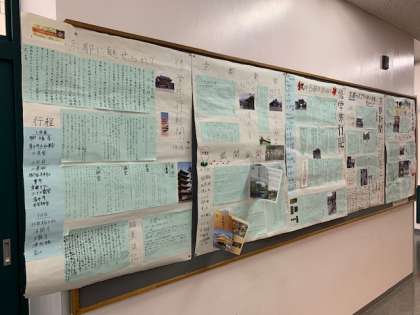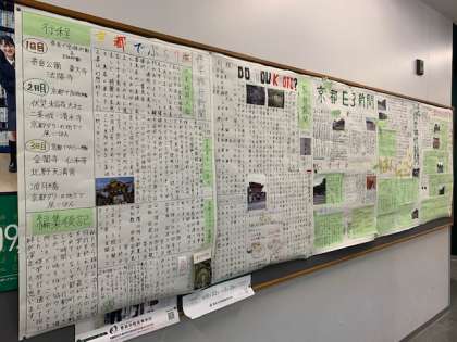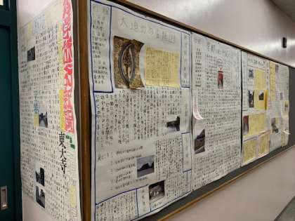 3年生の教室の外に、修学旅行新聞が掲示されています。明日は道徳授業地区公開講座ですので、ご来校の際ご覧ください。