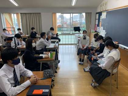 11月30日、烏山学舎の合同研修会でした。今回は烏山中が会場で、学舎の3校の小学校、幼稚園の先生方が来校し授業の様子を参観し、協議会を行いました。2枚目は2年生、3枚目は1年生国語。