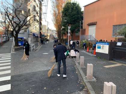 写真は校舎北側の清掃です。落ち葉がかなりありました。