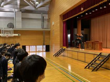 3学期のスタートです。大きな事故等なく、皆が顔をそろえることができたこと、うれしく思います。皆で協力して感動を共有しましょう。校歌もよく声が出て、素晴らしかった。保護者、地域の皆様、本年もどうぞよろしくお願いします。