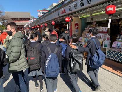 浅草に移動し、お昼ごはんです。その後は、浅草周辺の学習です。