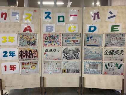 各クラスの体育大会に向けた思いが工夫されて表現されています。スローガンが達成できるよう協力していきましょう。