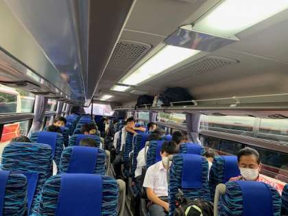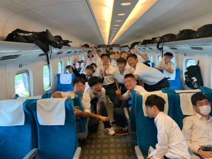 新幹線の車内は大盛り上がりでした。新大阪に到着し、今からバスで奈良方面に向かいます。