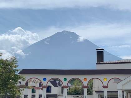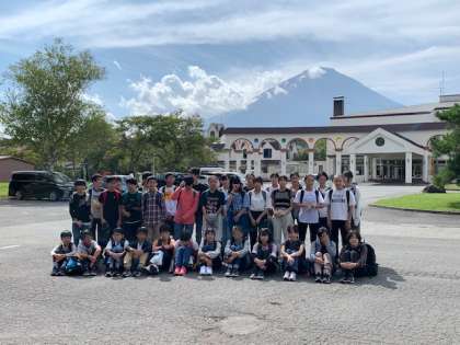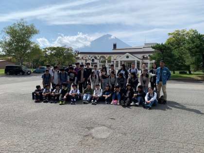 緑の休暇村に到着しました。富士山をバックにクラス写真を撮りました。明日の天気が心配なので富士山を見ることができて良かったです。