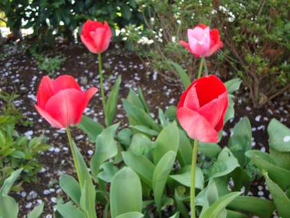※ 写真は花壇のチューリップと満開になった桜です。ご鑑賞ください。
