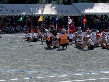 秋らしい天気の中、学舎の小学校運動会がありました。本校から多くのボランティアの生徒が参加してくれました。