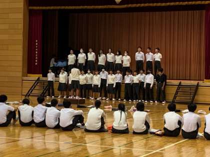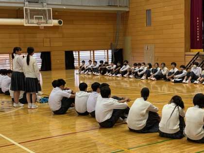 各クラス練習スタートしています。体育館では縦割り活動です。3年生から1年生へアドバイスがありました。