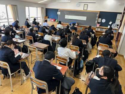 個人目標を記入したり、クラス目標を考えたりしています。A、B、C組の様子。