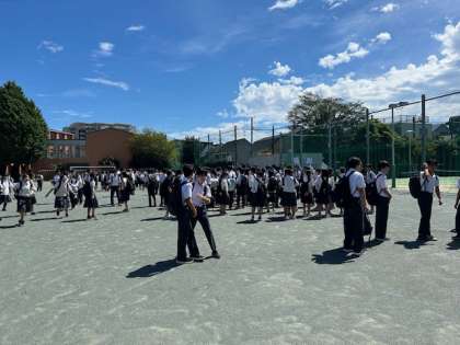 今日は防災の日。集団下校訓練を行いました。