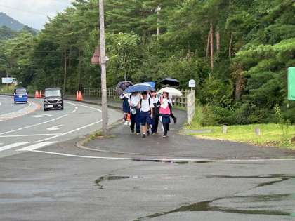 オリエンテーリング、最後の班が雨の中無事到着しました。
