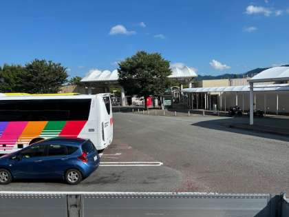 今、談合坂サービスエリアです。中央道で少し渋滞があるようです。到着が少し予定より遅れそうです。