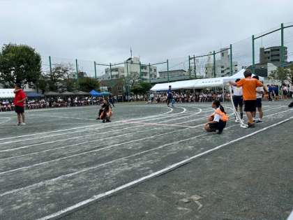 烏山学び舎の小学校の運動会でした。ボランティアの生徒たちも楽しそうに取り組んでいました。