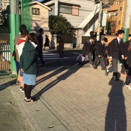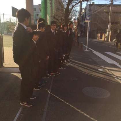 烏山学舎 烏山北小学校の児童のみなさんも一緒にあいさつをしてくださっています。