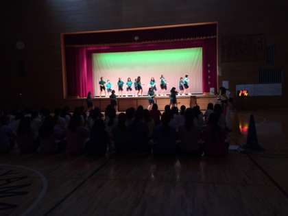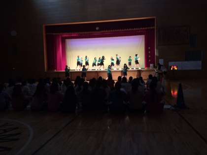 体育の授業で、ダンスをやりました。今日はその発表会です。みんな堂々と笑顔で踊りました。