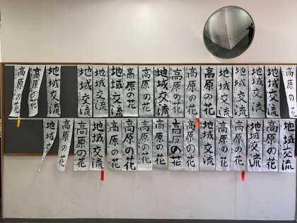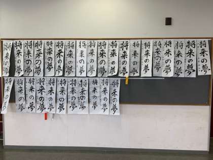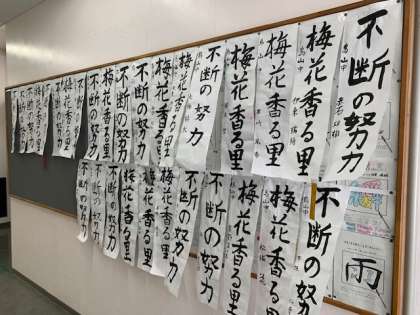 各クラスの掲示板に、書初めが展示されています。どれも素晴らしい作品です。