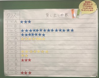 29日まで読書強化週間を実施してます。情報学習室に貸し出し冊数が表示されています。写真を撮っている時、「3Bは0冊だ」とクラスの話をしてくれた生徒がいました。本はあまり好きではないようでしたが、早く良い本と出会い読書の楽しみを知って欲しいものです。