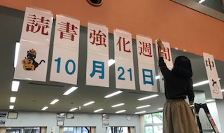 今日から29日まで読書強化週間です。図書委員会では、情報学習室に大きく掲示して、読書を呼びかけています。