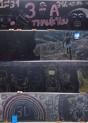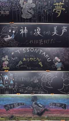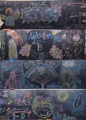 適度な緊張は人を成長させます。午前の部では、指揮者や伴奏者だけでなく、舞台に立った一人一人がそれぞれ緊張しながら、合唱を作り上げました。昨日各学級で黒板装飾に頑張った人もいます。途中のクラスもありますが紹介します。