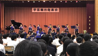 午後の部の様子です。上から演劇部「保健室でティータイム」、3年有志合唱「聞こえる」、吹奏楽部「春の喜びに」「やさしさに包まれたなら」他2曲です。