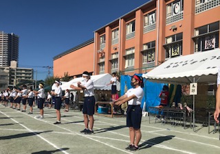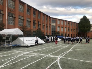 全校練習後に屋外での災害を想定して、避難訓練も行いました。