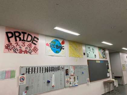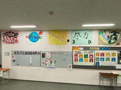 校内には、各クラスで考えたクラススローガンを掲示しています。