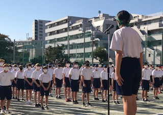 いよいよ今週土曜が体育大会です。生徒にとってコロナ禍で初めての行事です。今日は予行ですが「練習は綿密に、本番は大胆に」という言葉もあります。今日を真剣に取り組み、本番で力を出して欲しいと思います。