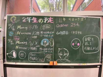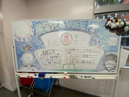 中央階段の前にあるボードに、体育実行委員が毎日記入をしてくれています。
