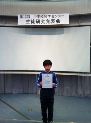 11月6日(土)に、世田谷区中学校科学センター第13回生徒研究発表会が行われました。烏山中からは、1年のK君が「天然酵母についての研究」を発表しました。お母さんの「天然酵母のパンはおいしい」ということが研究の動機でした。運営委員の先生方の評価も非常に高かったです。いつまでも、科学する心を大切にして下さい。