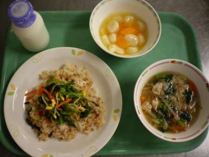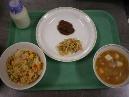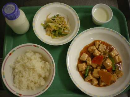 ごはん・家常豆腐・白菜の中華サラダ・ミルクゼリー