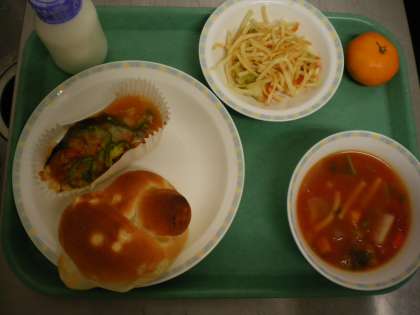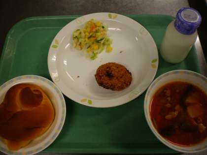 パインパン・白身魚のピザ風・カリカリポテトサラダ・ミネストローネ