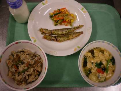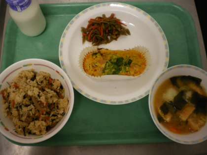 ひじきごはん・千草焼・きんぴらごぼう・みそ汁