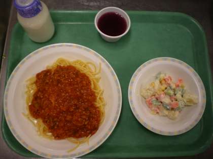スパゲティミートソース・アセドアンサラダ・ぶどうゼリー