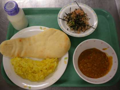 ナン・キ—マカレーライス・ほうれん草の乾物和え