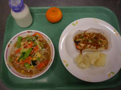 みそラーメン・鮭のチャンチャン焼き・じゃがバター・みかん