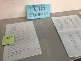 テスト勉強で活用してもらおうと、授業で余ったプリントを廊下に置き、自由に持って行けるようにしている教科もあります。先生達も「少しでも内容を理解してもらいたい!」「学力向上を図ろう」という気持ちでいます!