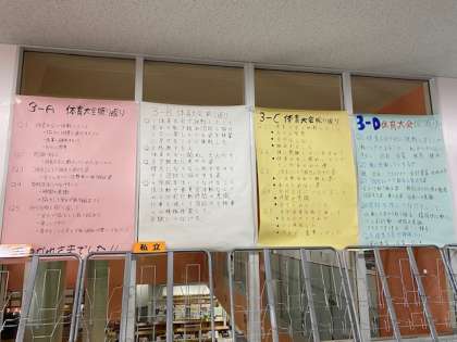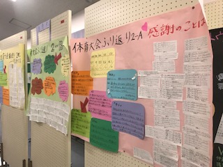 3年生だけでなく、1、2年生でも振り返りをまとめ、掲示しています。