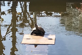 毎年、3年生が理科で太陽の動きを観察します。当然ながら天気が良くないと観察できません。今日は雲ひとつなく暖かな日で観察日和です。池の亀も嬉しそうです。